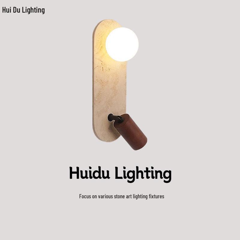 Yellow Travertine Wabi-Sabi Wall Lamp for Bedroom, Hotel, or Corridor