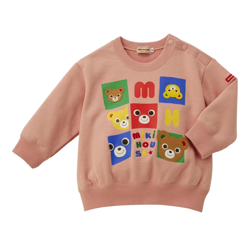 MIKI HOUSE Long Sleeve Sweatshirt with Bear Design, Made In Japan, for Boys and Girls, Baby & Kids, 130cm, Salmon Pink, Product Number 13-5602-685
