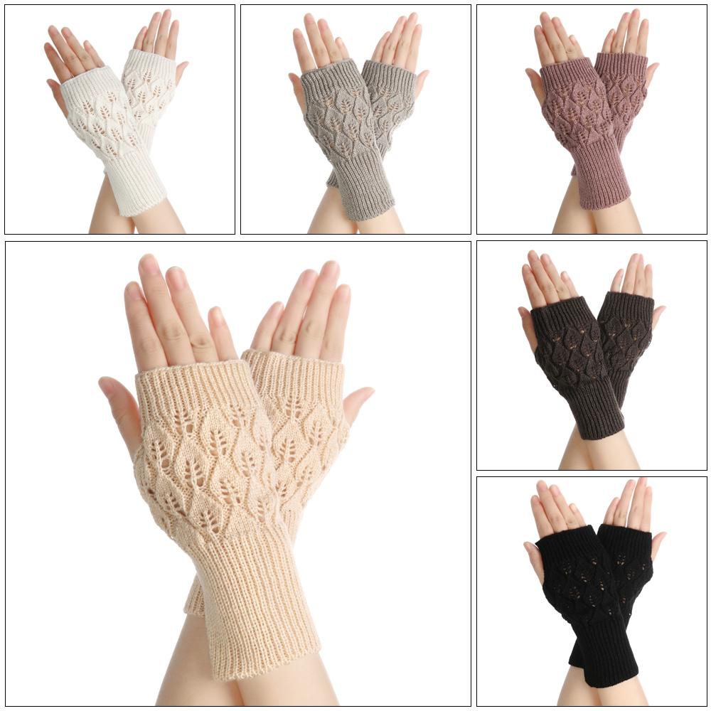 Protable Winter Autumn Warm Wool Wrist Gloves Half Mitten Exposed Finger Knitted Wool Glove