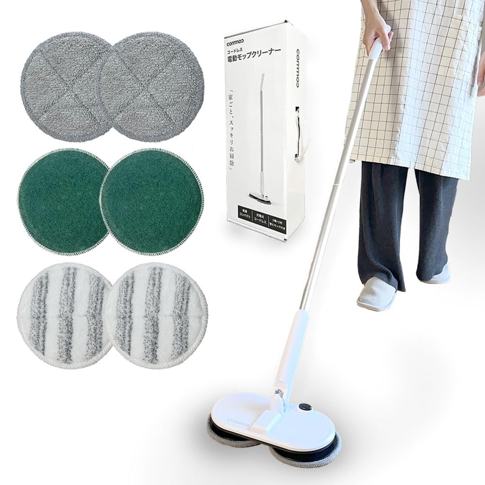 commoc Electric Mop Cleaner with 6 Replacement Mops (3 Types)