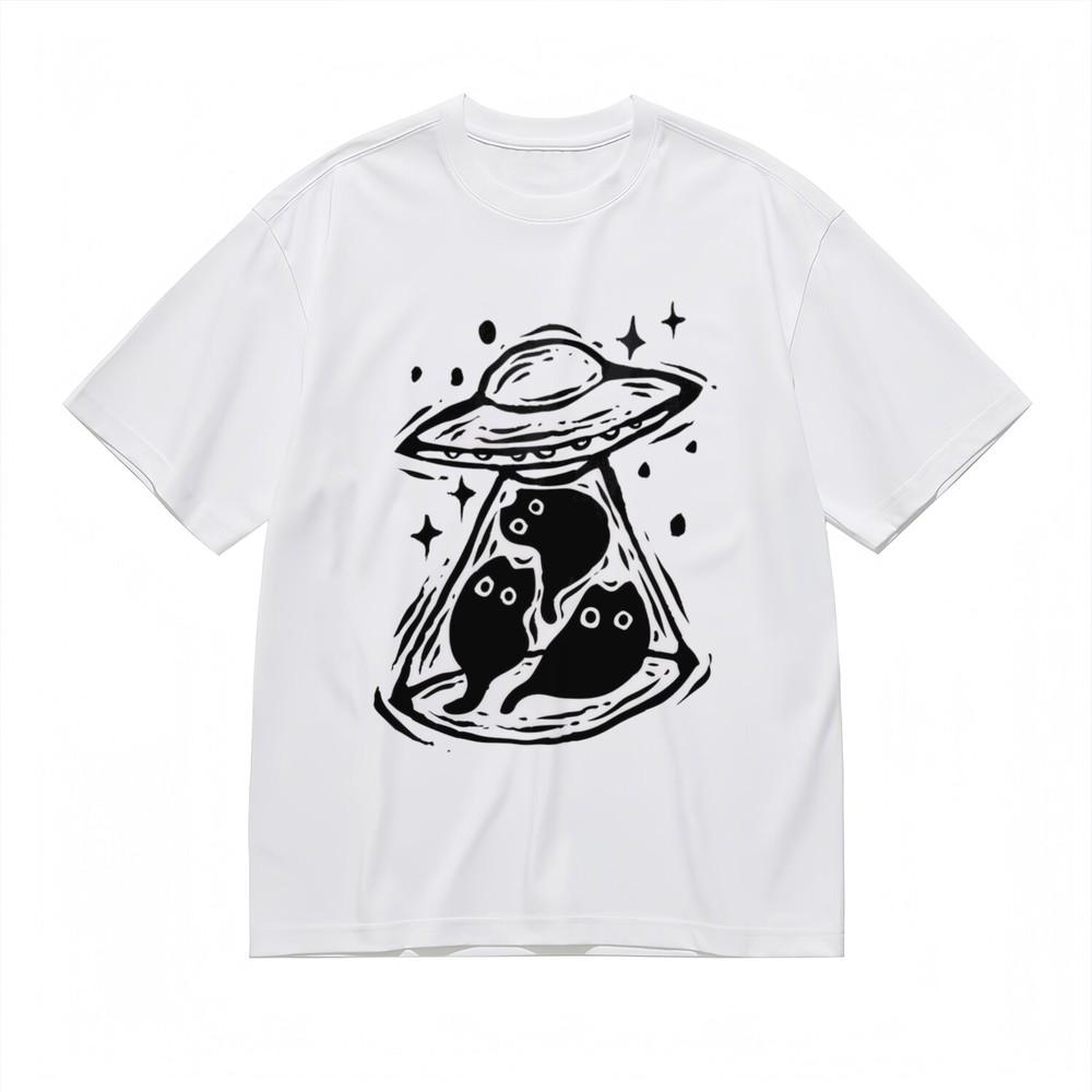 Women's T-shirt With UFO Cat Abduction Graphic Unisex White 100% Cotton Tops USA