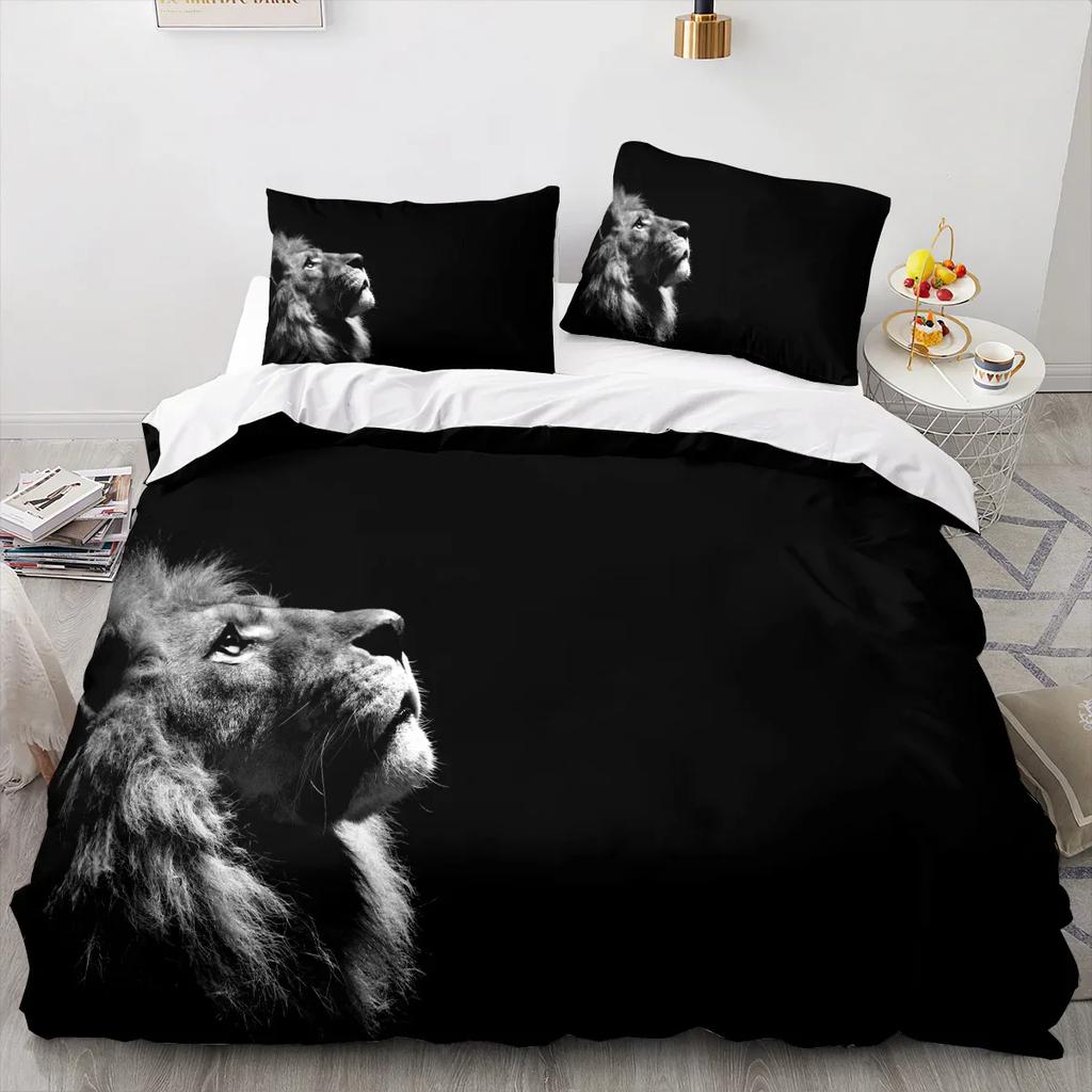 3PCS Lion Bedding Set Cool Animal Bed Linen Home Decor Single Double Twin Size For Boys Girls Kids Adults Lion Duvet Cover Set