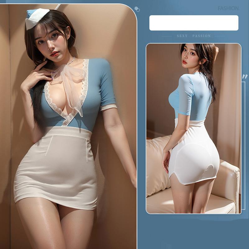 Sleepwear Secretary Hip Skirt Flight Attendant Uniform Passionate Nightclub No Take Off Set Women Evening Dress Short Dresses