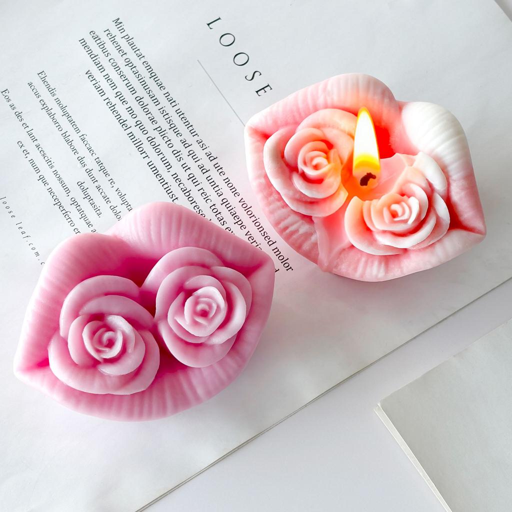 DIY Lip-Form Rose Flower Silicone Mold Aroma Candle Plaster Resin Mold Handmade Candle Making Supplies