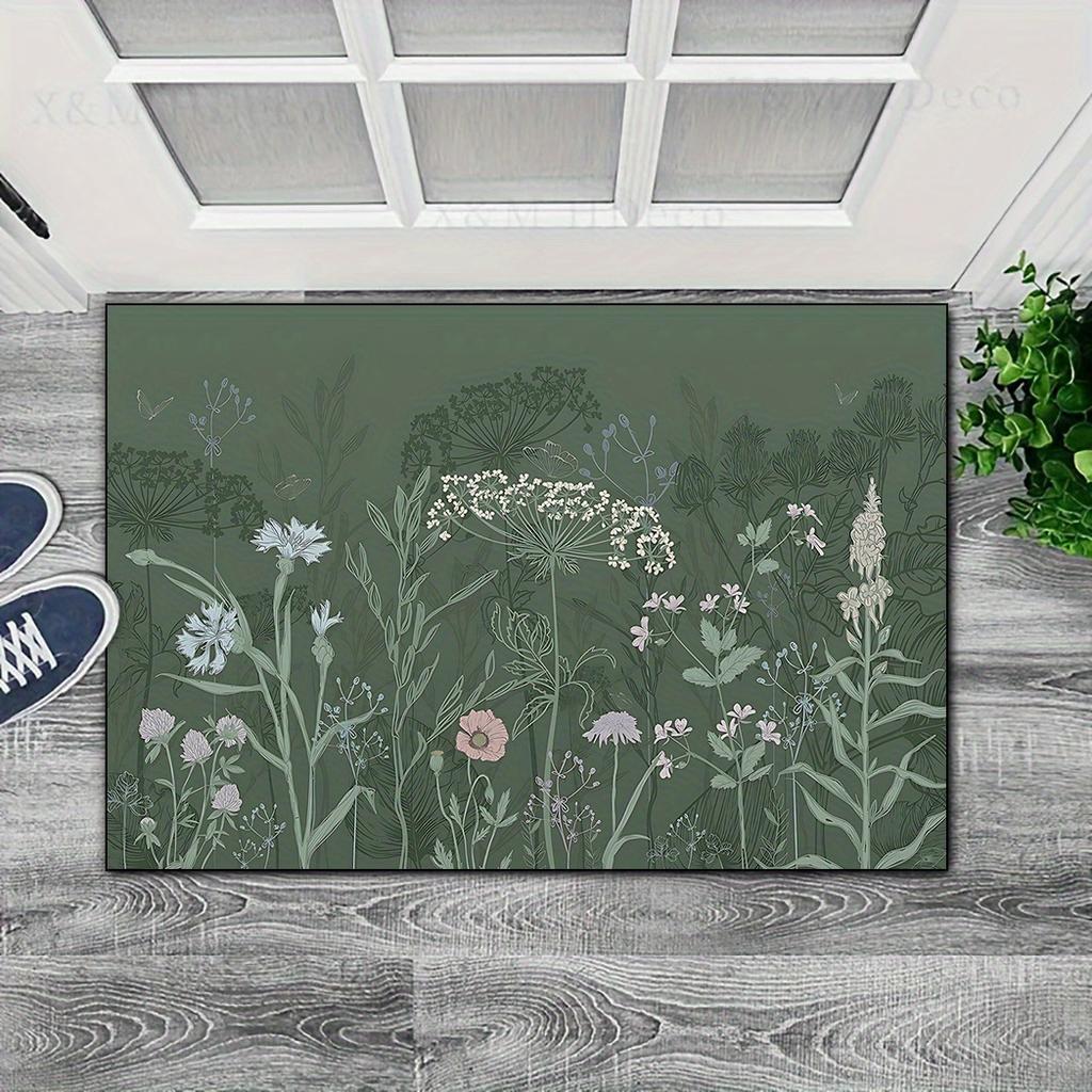 Green Doormat Floral Ink Painting Carpet Welcome Mat Outdoor Carpet Soft Living Room Carpet Rug For Bedroom Home Decorati