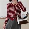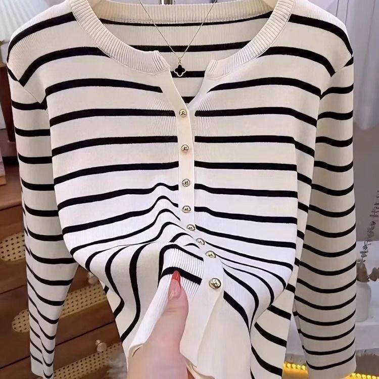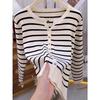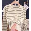 Autumn New Short Cardigan Striped Fashion Women's Crew Neck Knitted Long-sleeved Sweater Bottoming Shirt Tide