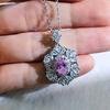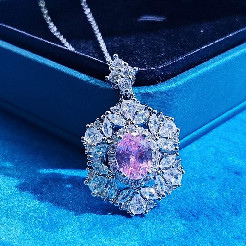 Exaggerated Heavy Industry Brilliant Pink Purple Diamond Pendant Necklace Colored Treasure Elegant High-end Sense Full of Diamond Light Luxury Chain