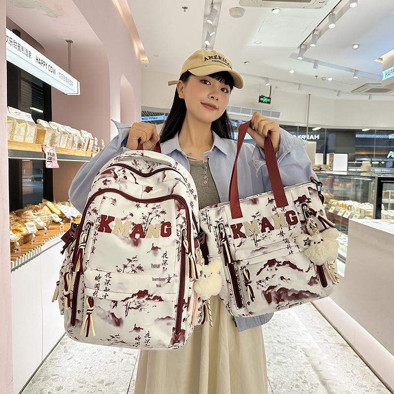 Chinese Ink Wash Backpack, Large Capacity for Students: Ideal for Girls, Boys, and College Use
