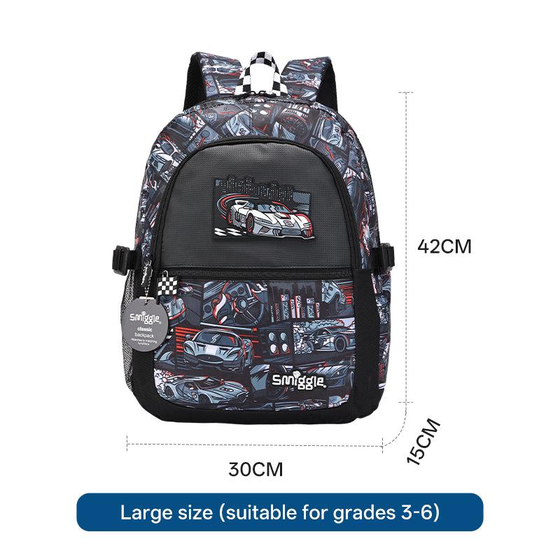 Australia Smiggle Sports Car Backpack: Spine Protection, Load Reduction, Large Capacity for Grades 4-6 Elementary Students.
