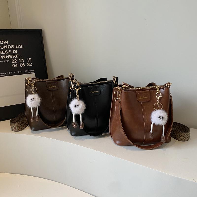 Korean Style Retro Square Bucket Bag - Versatile Large Capacity Crossbody for Women