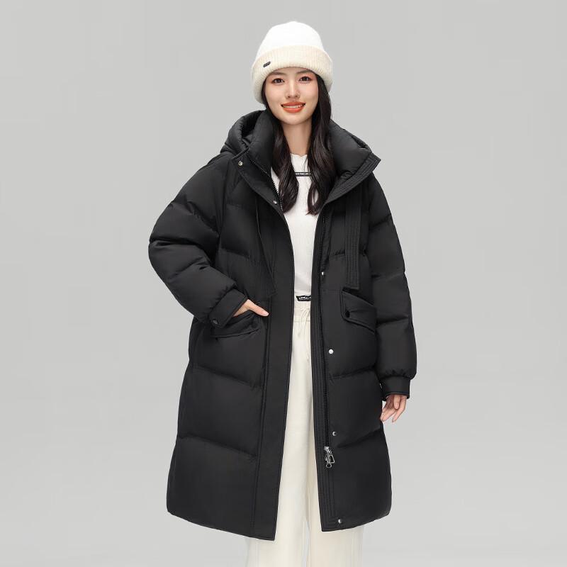 Fengmao Women's Korean Style Detachable Hood Mid-Length Thick Down Jacket FMYL6887