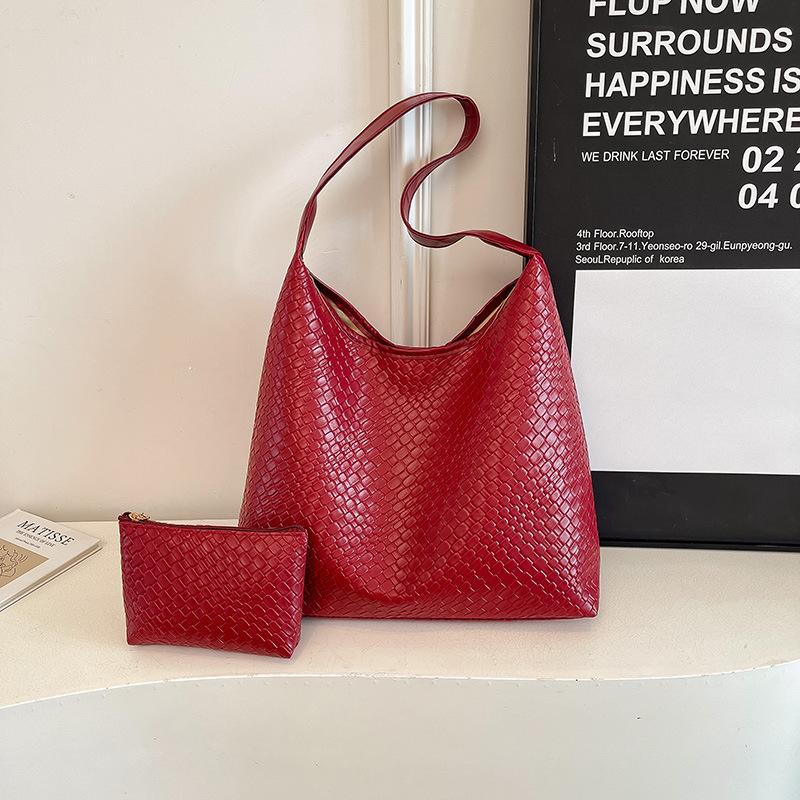 Casual Retro Large-capacity Mother and Child Bag Women's New Popular Versatile Foreign-style Woven Bucket Bag Shoulder Bag