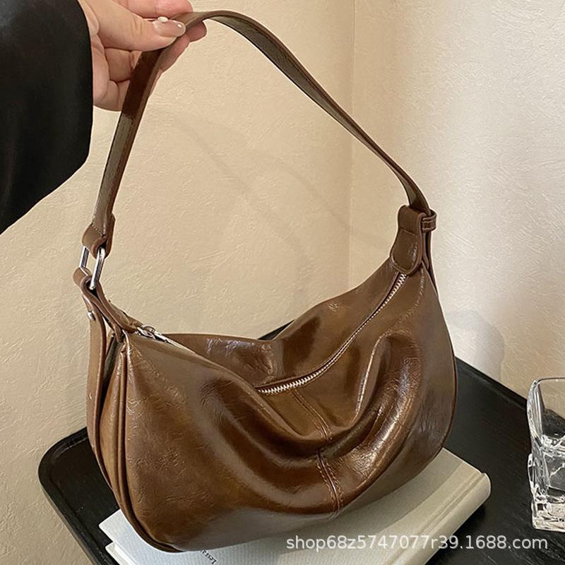 New Simple Bag Female Moon Underarm Oily Skin Trendy Super Soft Shoulder Dumpling Bag Premium Texture Messenger Bag