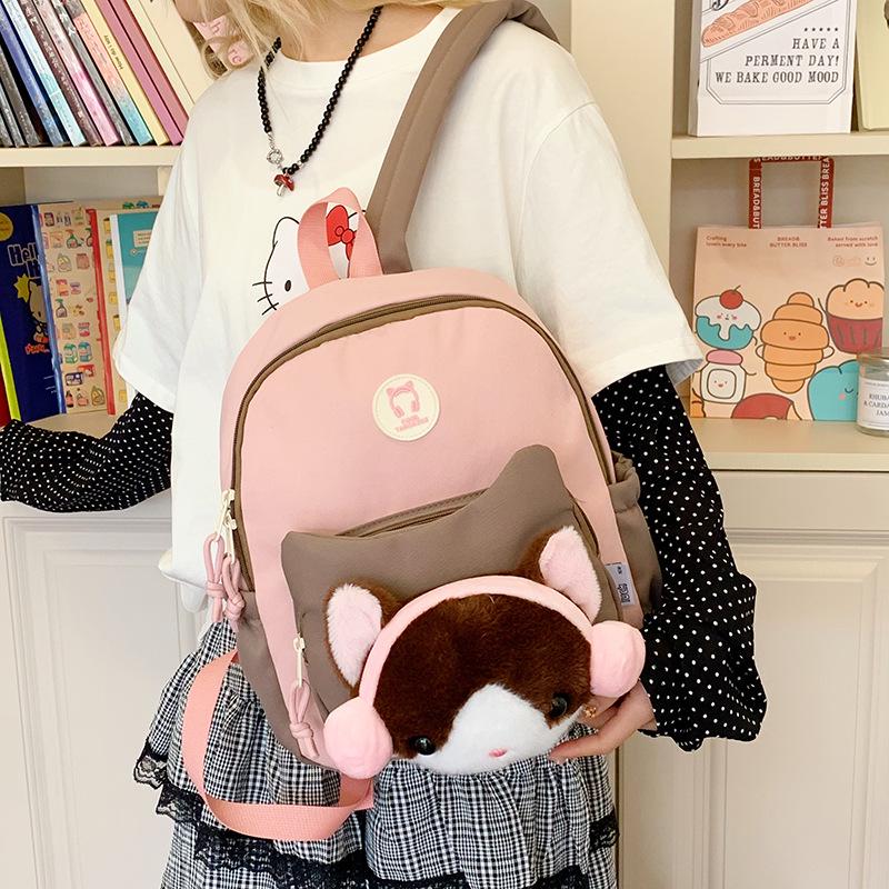 Cute Cartoon Trendy Backpack: Large Capacity, Lightweight, Versatile Travel/School Bag with Earphone and Doll Holder.