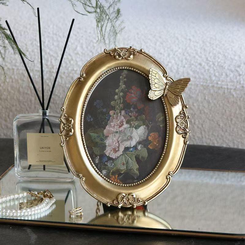 French Vintage Photo Frame 7 Inch, Elegant Luxury Oil Painting Style Butterfly Wall Mount & Tabletop Display for Home Decor Gift