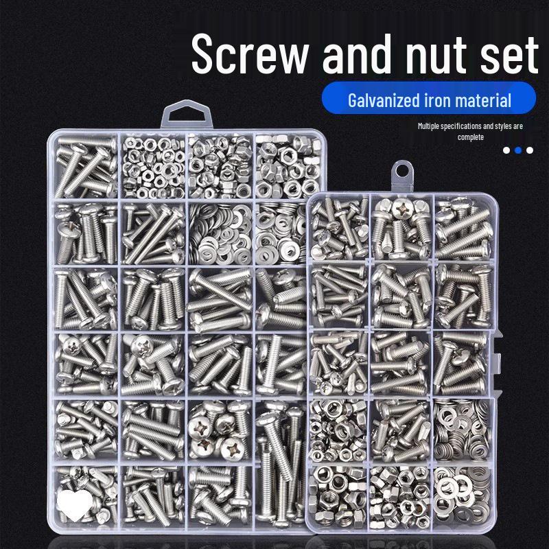 Household Screw Set: Self-Tapping Screws, Nuts, Washers, and Box