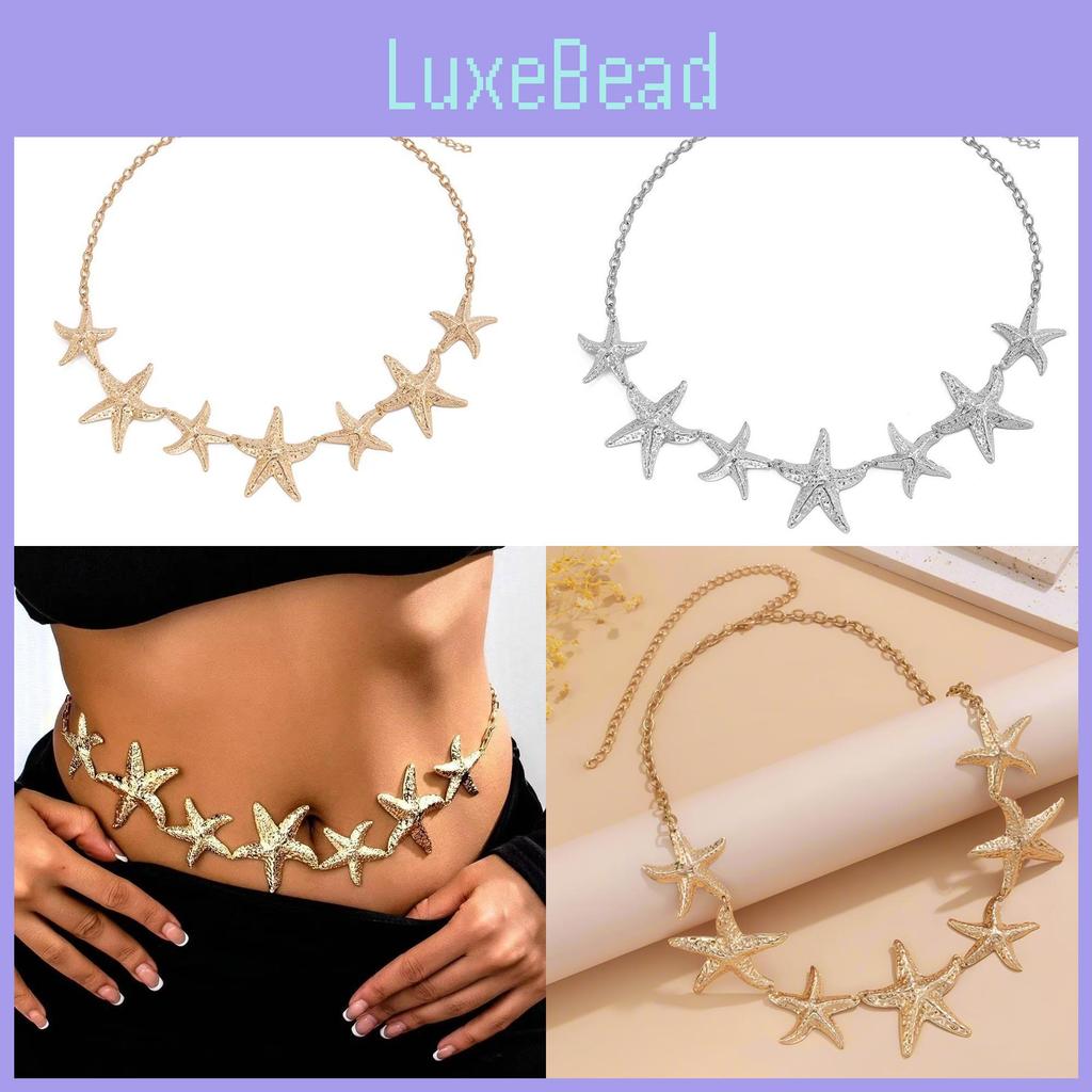 This fashion waist chain features a stylish starfish design, crafted from durable alloy with electroplated finishes in gold and silver tones.it offers versatility for various outfits and occasions. Ideal for beachwear, resort outings, or summer dresses, the accessory adds a touch of nautical elegance. Easy to maintain, wipe clean with a damp cloth after use.