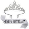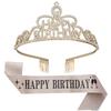 Happy Birthday Party Crown Hair Band Crystal Headwear Hair Accessory Gold Onion Cloth Belt Sash