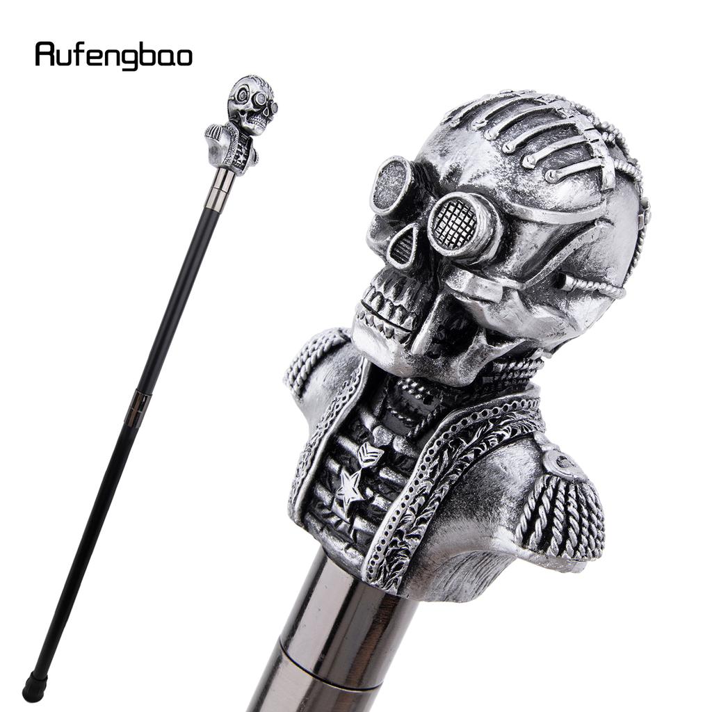 Silver Resin Skull Head Walking Cane Fashion Decorative Steel Stick Gentleman Elegant Cosplay Cane Knob Crosier 92cm