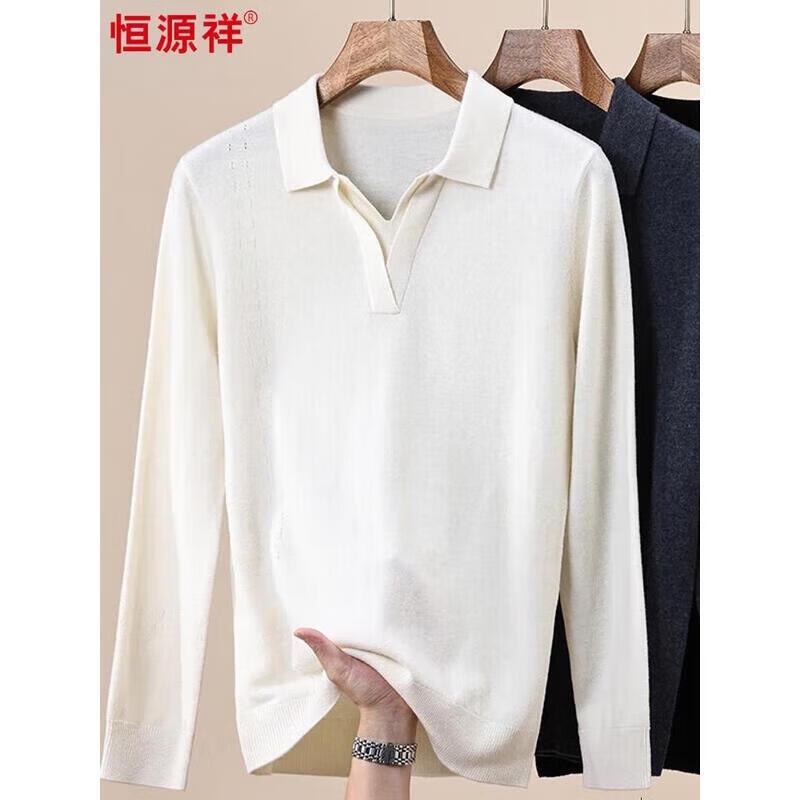 Hengyuanxiang Men's Pure Wool Faux 2-Piece Polo Sweater