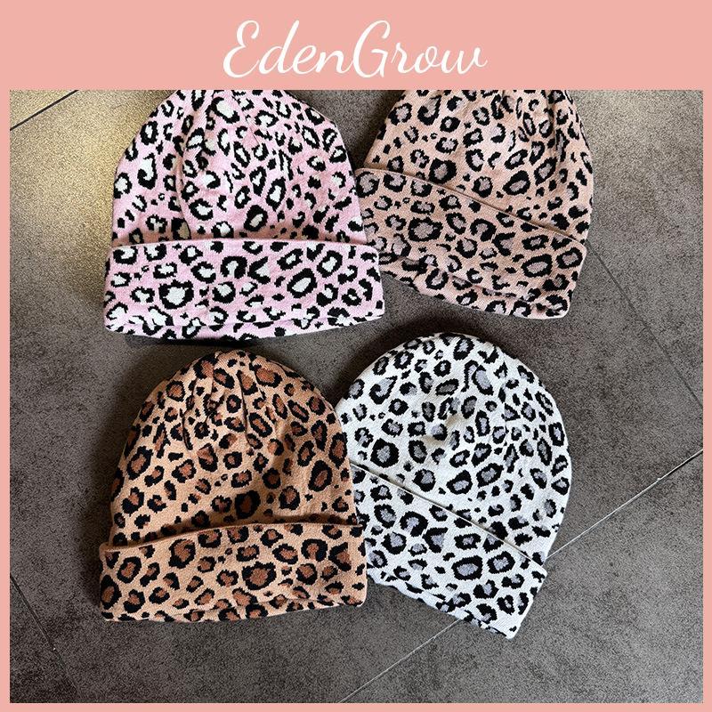 Knit Fashion Hat With Leopard Print Design Suitable For Daily Cold Seasons
