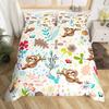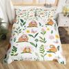 Sloth Bedding Set Kawaii Animals Comforter Cover For Boys Girls Teens,Botancial Flowers Duvet Cover Cartoon Wildlife Quilt Cover