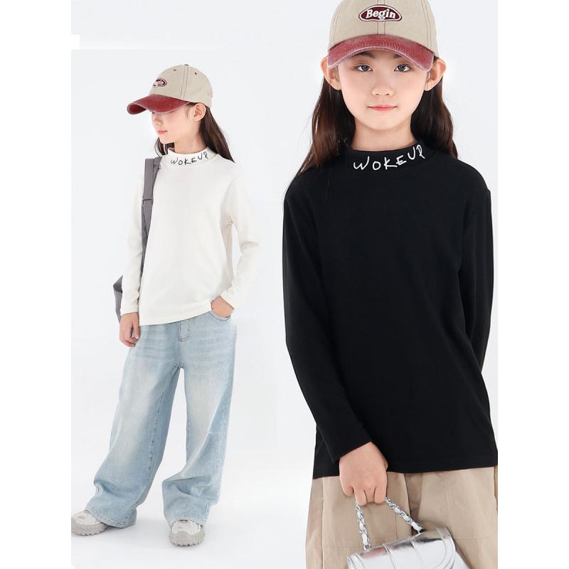 Girls' Half Turtleneck Base Shirt Autumn Winter Children's Long Sleeve Mid-High Neck Inner Top A-Class Big Kids Warm Top
