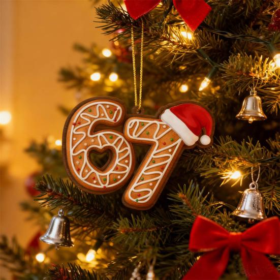 This 67 christmas ornament is crafted from high-quality, durable materials designed to add a festive touch to your holiday decor. Its beautiful and eye-catching design creates a warm, inviting atmosphere perfect for Christmas celebrations.