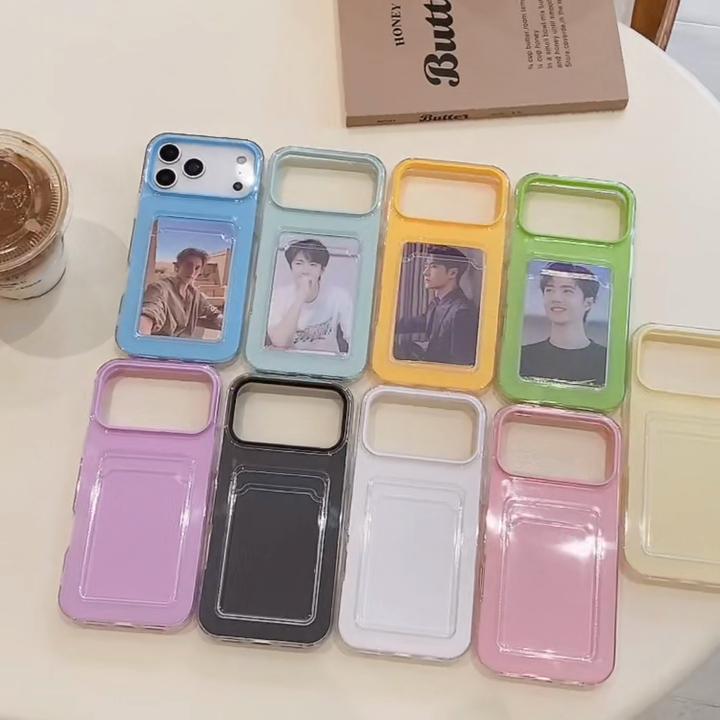 Candy Transparent Soft Silicone+PC Card Slot Case For iPhone 17 Air 16E 15 14 13 12 11 Pro Max Luxury Jelly Wallet Bumper Cover