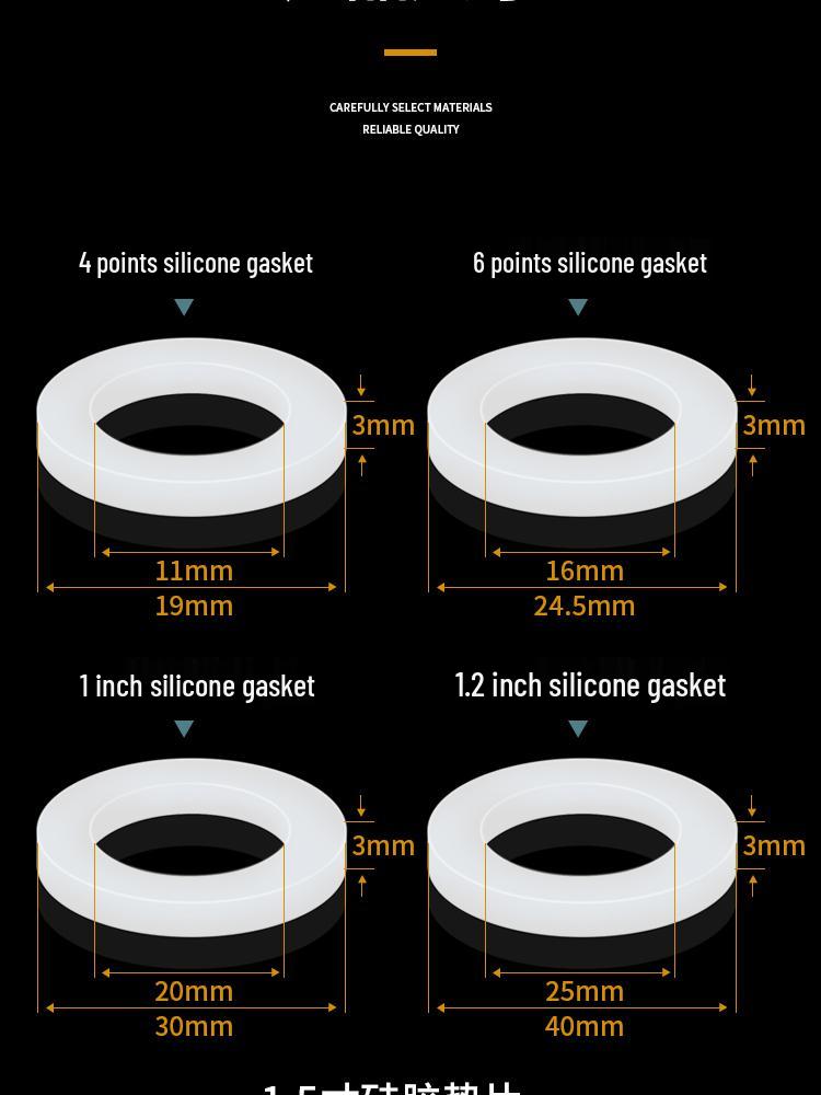 Silicone Gasket for 1-Inch Hose, Faucet, Water Meter, or Shower Head - 4 & 6 Point Sealing Ring.