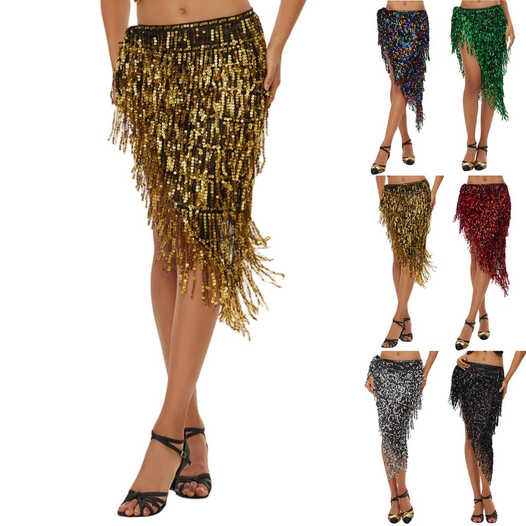 Women's High Waisted Sexy Sequined Half Skirt Waist Accessories Sequined Belly Dance Waist Scarf