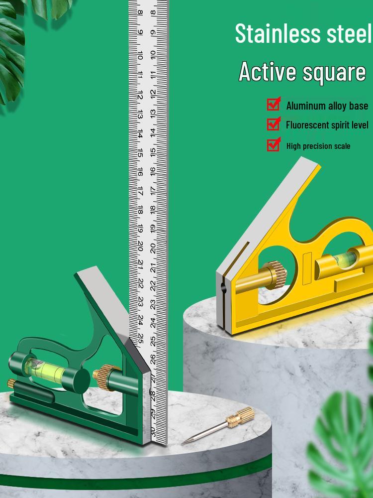 Multifunctional Stainless Steel 90° Angle Ruler for Woodworking