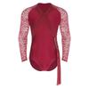 Mens Latin Dance Bodysuit Sheer Floral Lace Long Sleeve Ruched Mesh Layer Drape Chain Tassel Leotard Jumpsuit