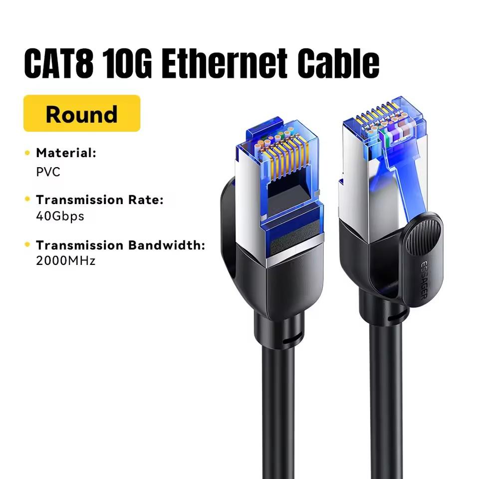 Essager CAT8 Ethernet Cable 40Gbps 2000MHz CAT 8 Networking Cotton Braided Internet Lan Cord for Laptops PS 5 Router RJ45 Cable