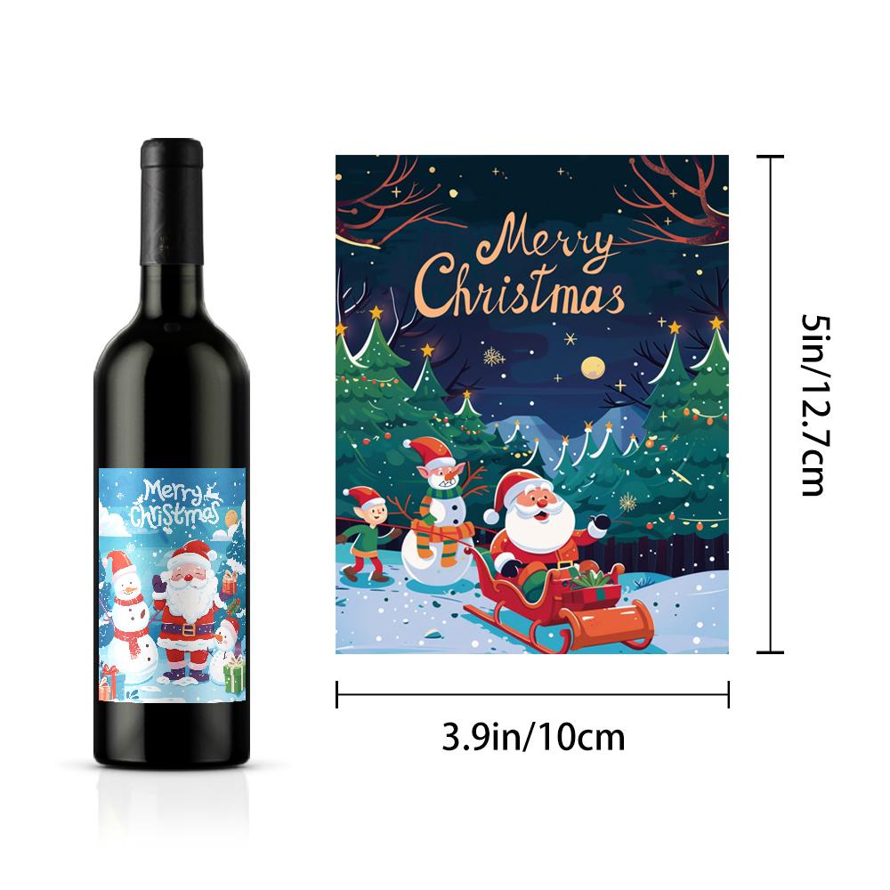 9pcs Christmas Decoration Wine Bottle Waterproof Stickers 5x3.93inch Christmas Wine Label, Christmas Party Decoration