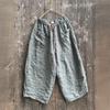 Johnature Women Vintage Striped Wide Leg Pants Patchwork Pockets Elastic Waist Trousers Autumn Loose Belt Pants