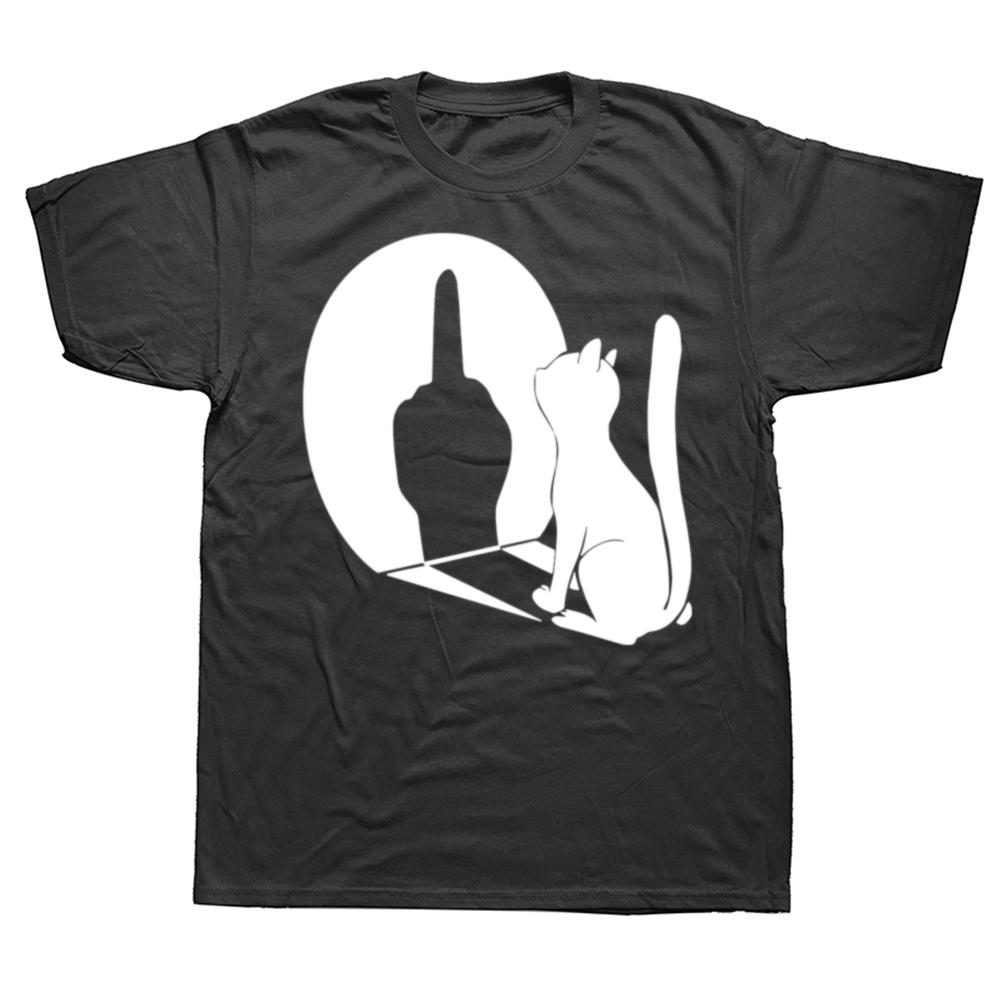 Funny Cat Shadow I Hate People Middle Finger T Shirts Men Cotton Humor Streetwear Tee Shirt Short Sleeve Unisex Loose Clothing