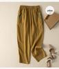 Women's Retro Cotton Linen Harem Pants High Waist Wide Leg Cropped Trousers with Pockets