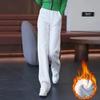 Embrace the chilly days in style with these chic wide-leg pants, crafted from luxurious wool and lined with cozy fleece for added warmth. Designed for comfort and elegance, these black corduroy pants feature a sophisticated wide-leg silhouette that complements various outfits. The woven fabrics ensure durability and a smooth finish, making them a versatile addition to your autumn and winter wardrobe. Perfect for pairing with your favorite sweaters or jackets, these pants are a must-have for any fashion-forward individual looking to stay warm and stylish.