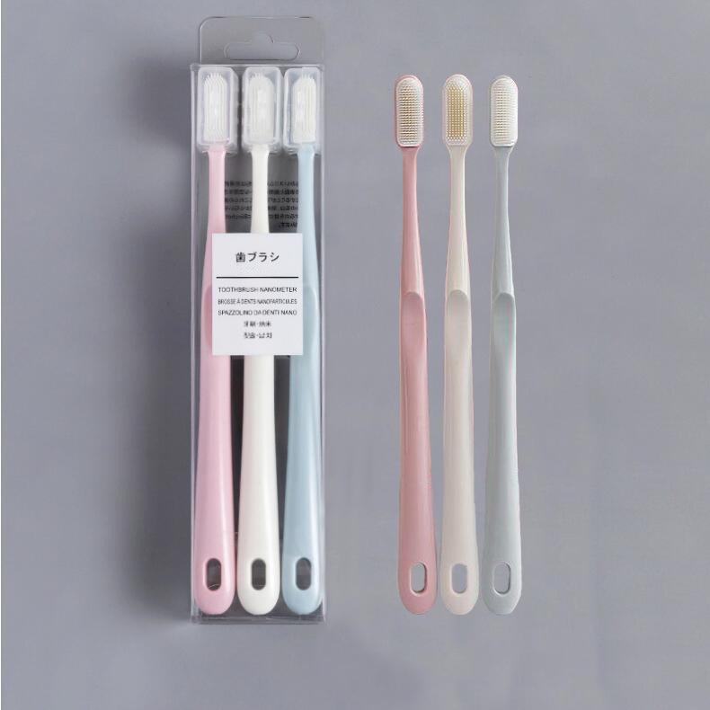 Macaron Nano Toothbrush Set: 3-Piece Japanese Adult Design with Lid, Small Head, Ceramic Colors