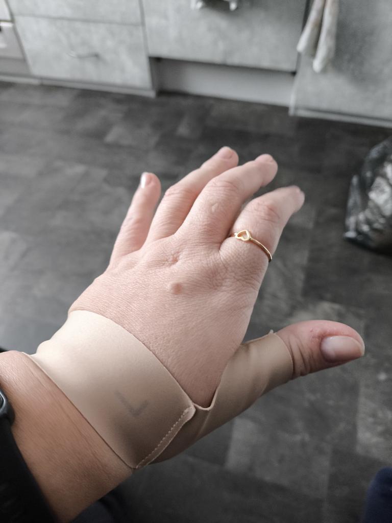 Size L for a wrist circumference of 19.5 fits loosely on the finger, unfortunately it didn't suit me. My mom has 20, it fits better on her finger, a slight compression is felt. I would like understanding in the measurements not only of the wrist, but also the circumference of the finger, especially since there is a need for finger compression!