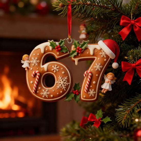 This 67 christmas ornament is crafted from high-quality, durable materials designed to add a festive touch to your holiday decor. Its beautiful and eye-catching design creates a warm, inviting atmosphere perfect for Christmas celebrations.