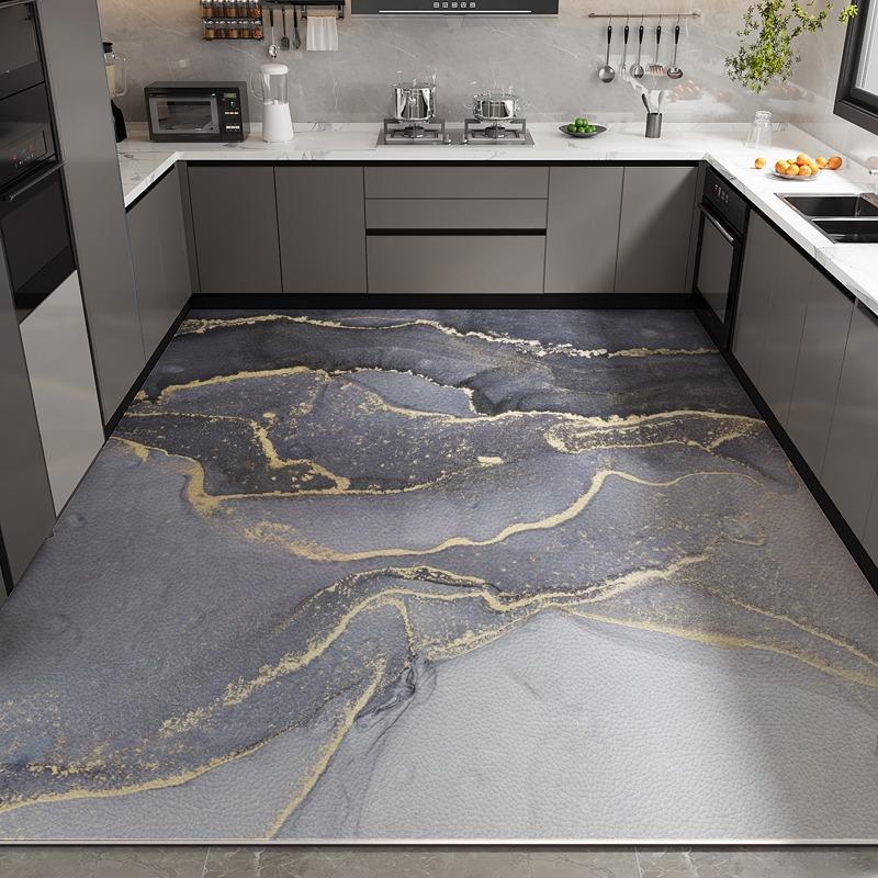 Kitchen Floor Mat Waterproof Non-slip Oil-resistant Leather Carpet PVC Large Size Imitation Marble Geometric Rug Home Decora Mat