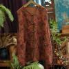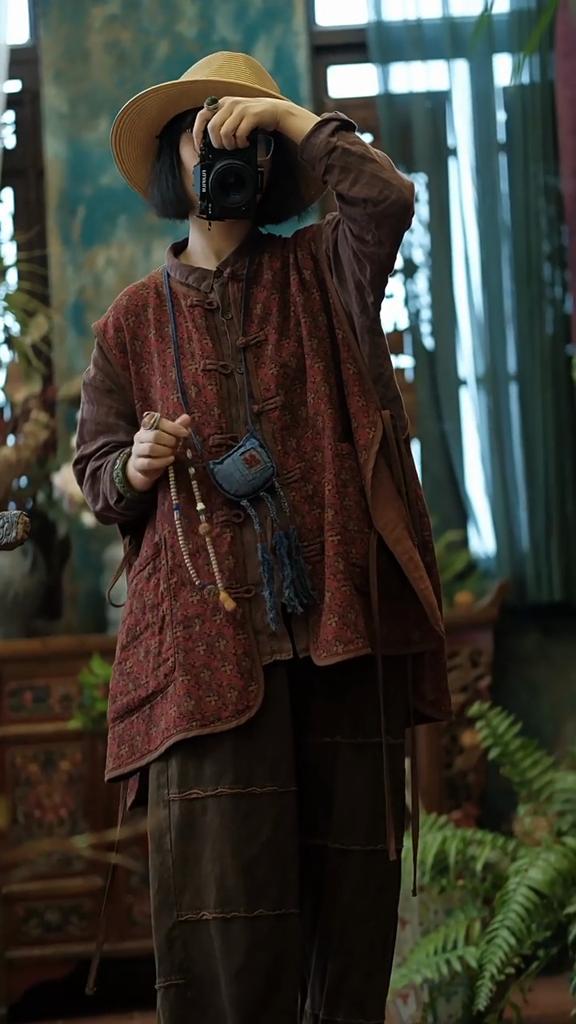 Johnature Women Vintage Print Floral Vests Coats Button Sleeveless V-Neck Autumn Chinese Style Pockets Vests