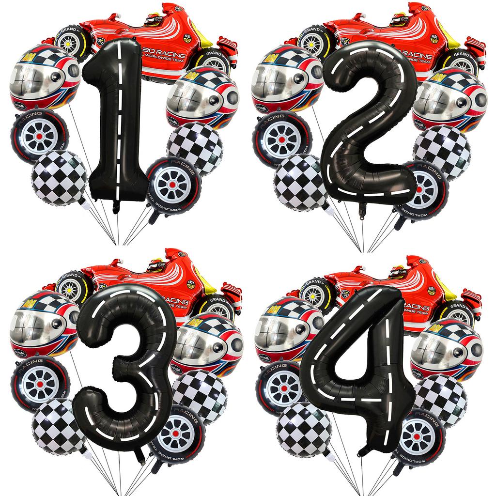 Racing Helmet Aluminum Film Balloon Set 40 Inch Black And White Digital Children'S Birthday Party Scene Decoration