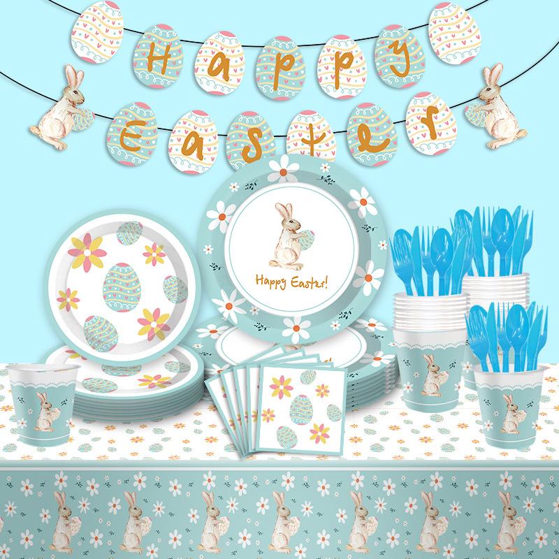 Easter Bunny Egg Theme Party Set Holiday Disposable Paper Plate Paper Cup Paper Towel Tableware Decoration