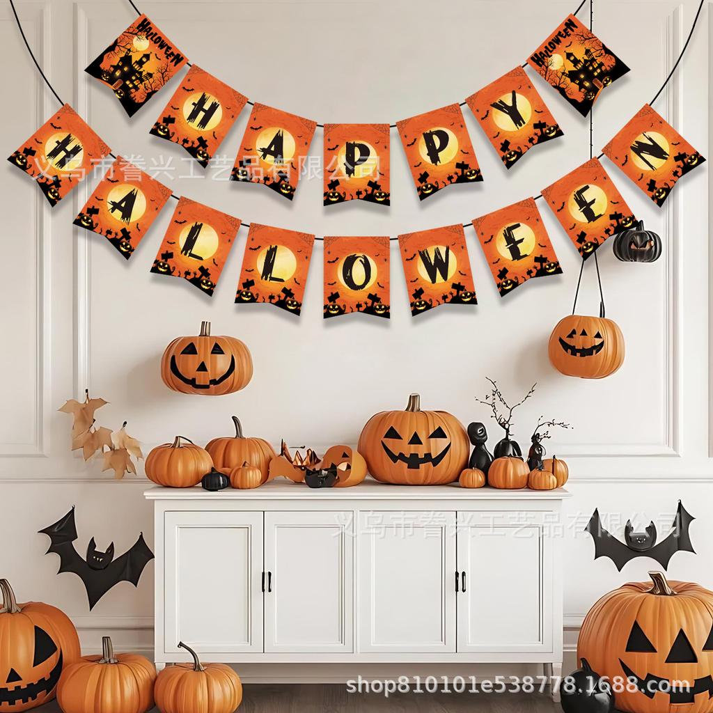 Spot Halloween Party Flag Pumpkin Bloody Hand Skull Halloween Holiday Decoration Flag Party Decoration Banner