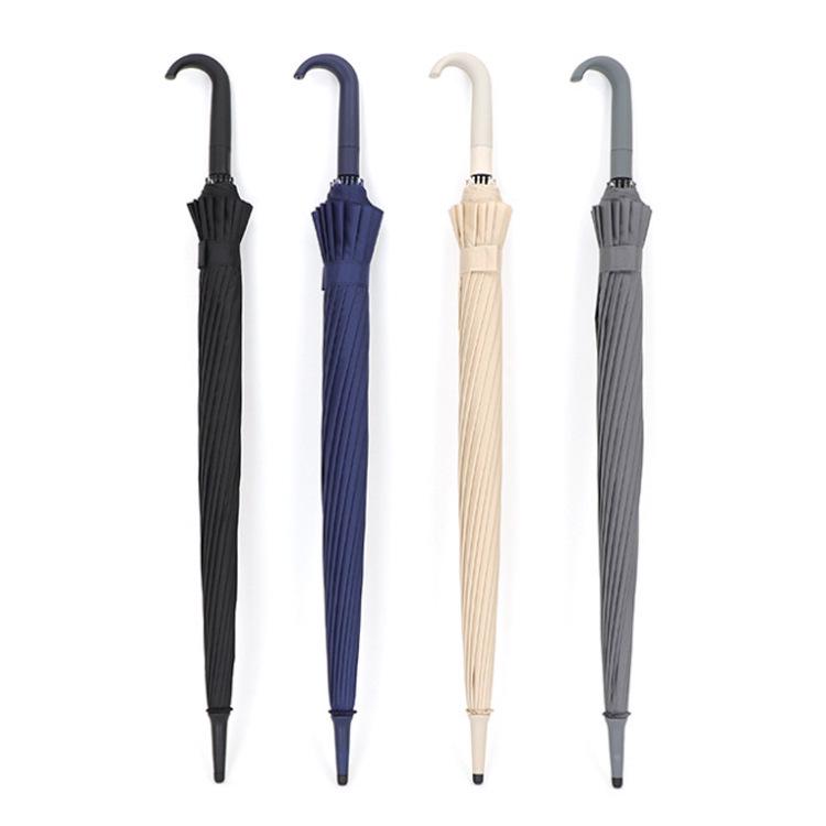 Windproof 16-Rib Large Solid Color Automatic Open Umbrella with Long Handle