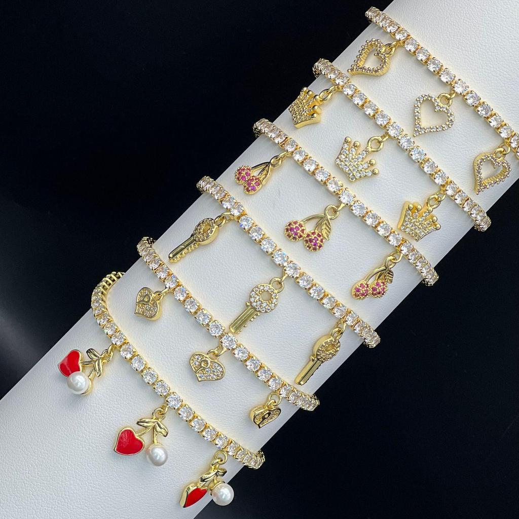 Full Diamond Cherry Zircon Bracelet Heart Crown Pendant - European & American Luxury Fashion
