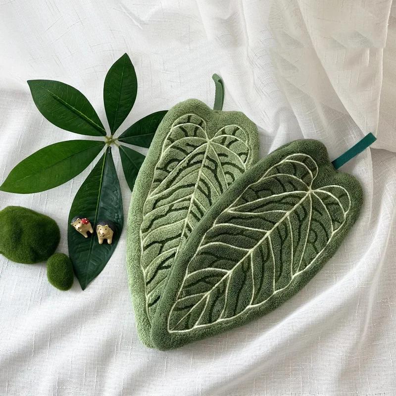 Hand Towel Plant Modeling Kitchen Cleaning Absorbent Coral Fleece Hand Towel Hanging Type Thickened Kitchen Towel